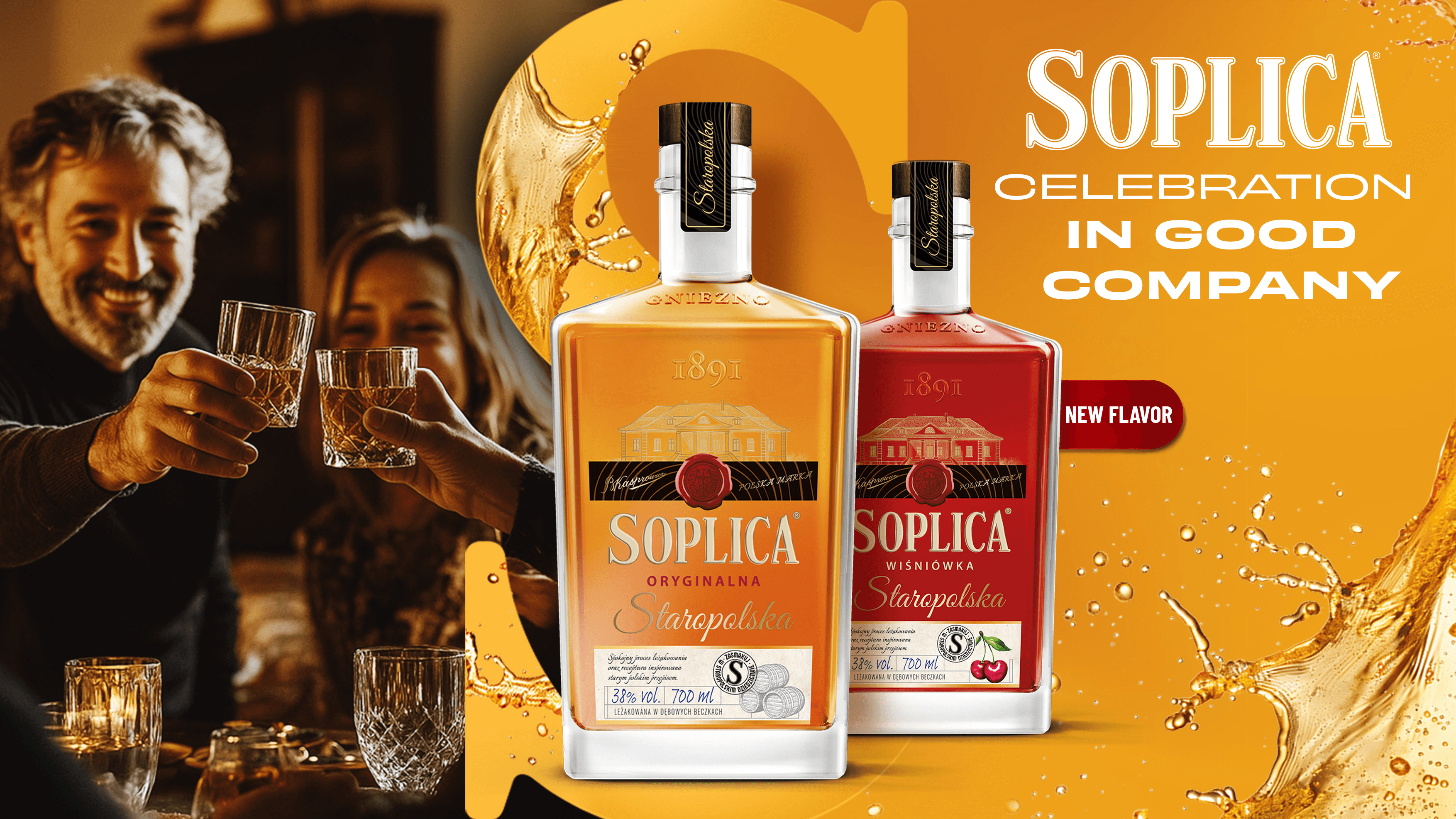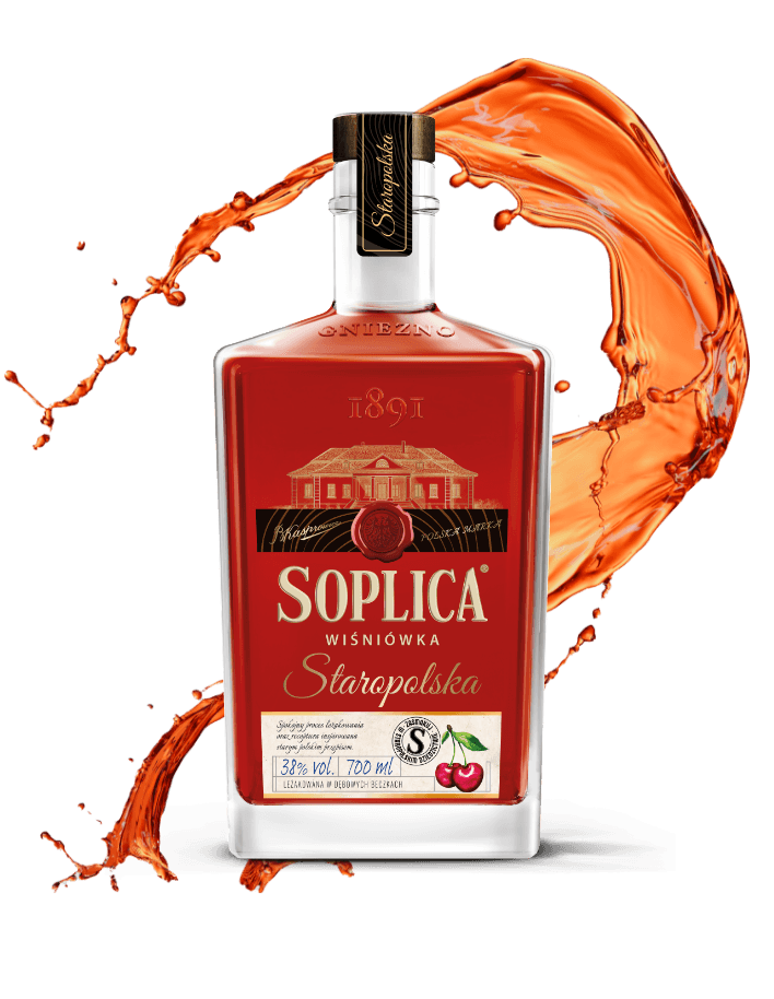 Soplica Staropolska Cherry is a unique liqueur crafted from a recipe inspired by an old Polish recipe. It combines aromatic notes of cherry, walnut, plum, and clove. The whole mixture matures under special conditions until it reaches its full, slightly sweet and fruity flavour.