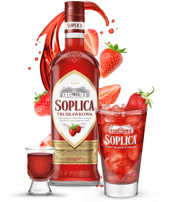 STRAWBERRYSTRAWBERRYStrawberry Soplica constitutes an exceptional combination of tradition and the best fruit of the Polish summer. This liquor owes its sweet flavour to juicy strawberries ripening in the summer sun as well as to long maturation.