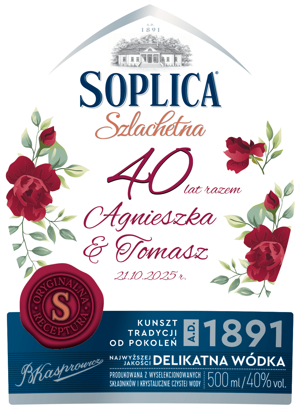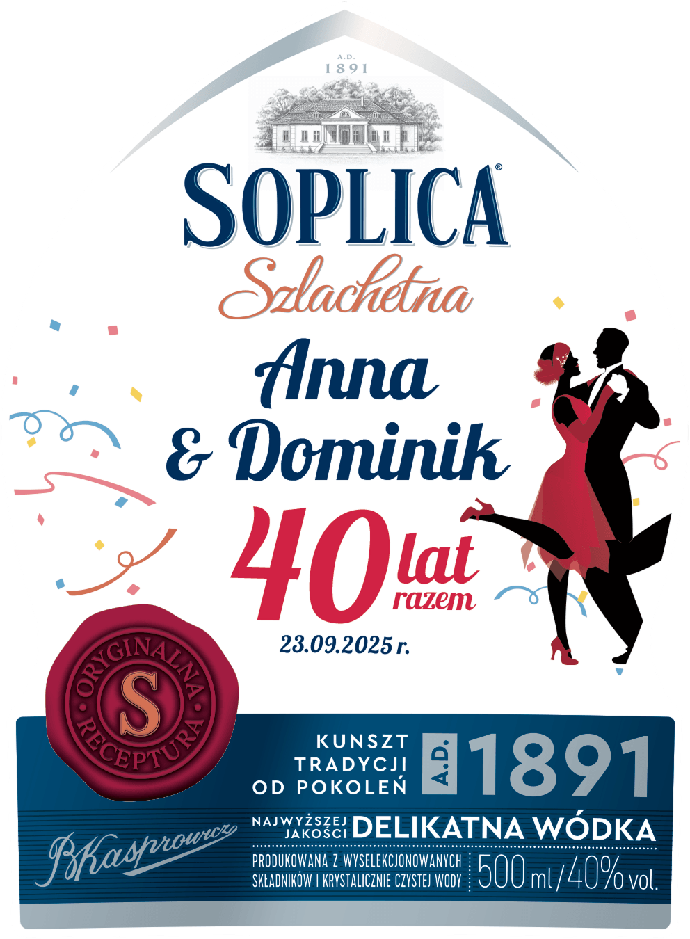Kup minimum 45 butelek Soplicy Szlachetnej 500 ml lub 15 butelek Soplicy Cytrynówki 500 ml lub 15 butelek Soplicy Gorzkiej z miętą 500 ml lub 36 butelek Soplicy Smakowej 100/90 ml i stwórz swoje personalizowane etykiety.