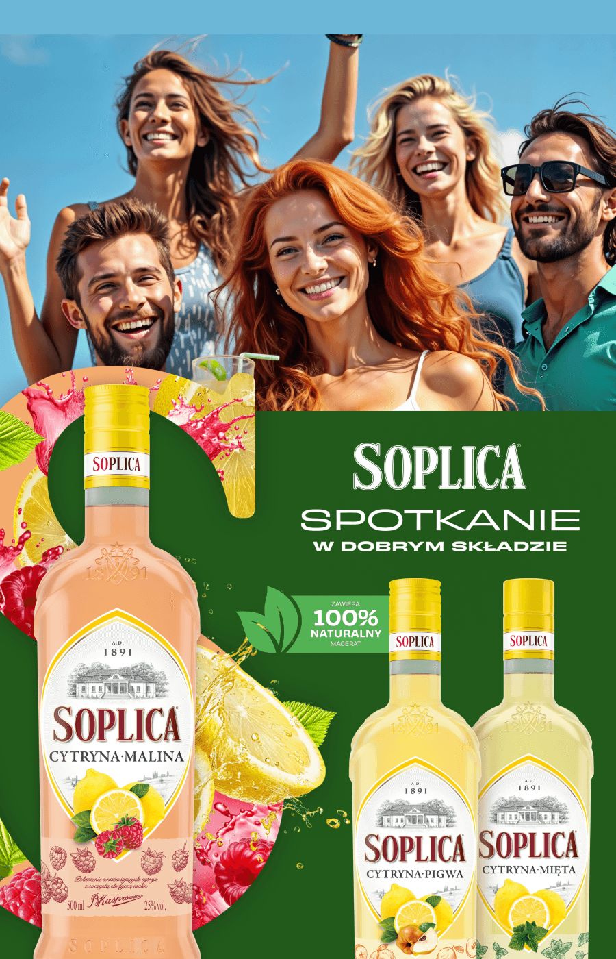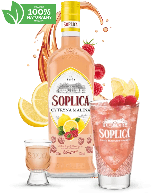 CYTRYNAMALINACYTRYNAMALINASoplica Cytryna-Malina to idealne połączenie orzeźwiającego smaku dwóch owoców i najwyższej jakości Soplicy. Dzięki kwaskowatej cytrynie, wzbogaconej soczystą słodyczą malin, ma przyjemny posmak i wyjątkowy, owocowy aromat.